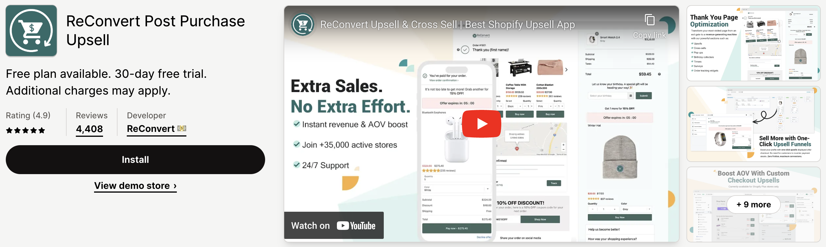 App Description: ReConvert focuses on optimizing the thank you page to drive additional sales post-purchase. Its user-friendly interface allows for personalizing cross-sells, pop-ups, custom videos, and more.